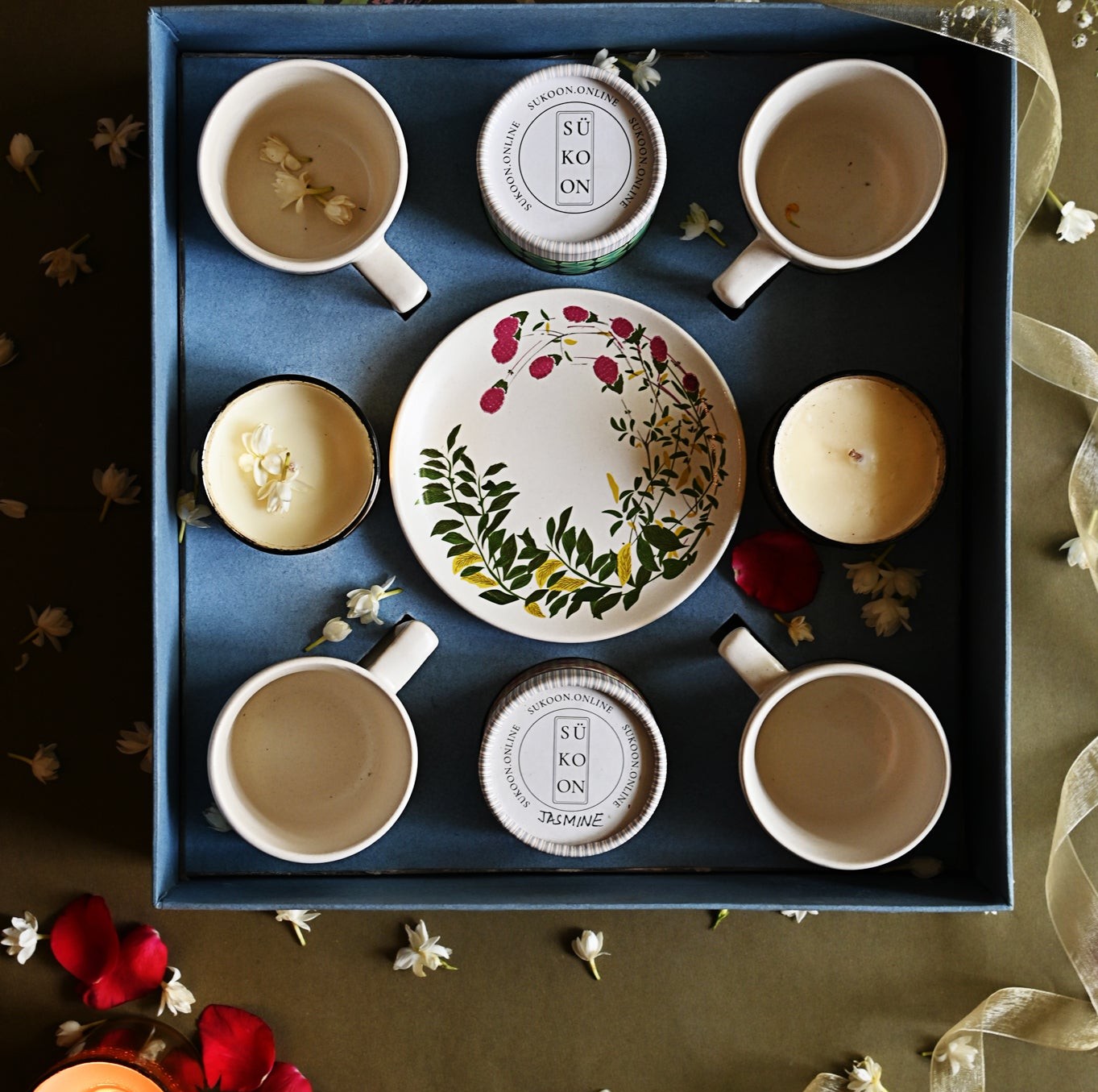 Premium Stoneware Mug & Tea Plate Gift Set with Pure Brass Spoons
